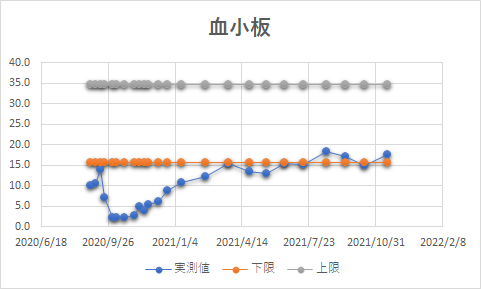 | PLT(血小板) | 10*4/μL | 17.6 | 34.8 | 15.8 | |
