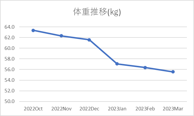 ご覧の通りで昨年10月は64㎏近くありました。1月の下痢とその後の食欲不振で3月が55㎏台、4月前半は54㎏迄下がってしまいました。3月前半は食べようと思っても食べれませんでした。「食べられない」というのは人生初でした。