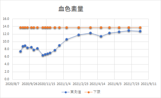 | HGB(血色素量) | g/dL | 12.8 | L | 16.8 | 13.7 |
