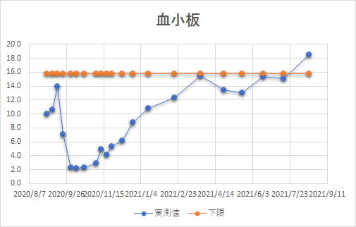 | PLT(血小板) | 10*4/μL | 18.5 | 34.8 | 15.8 | |