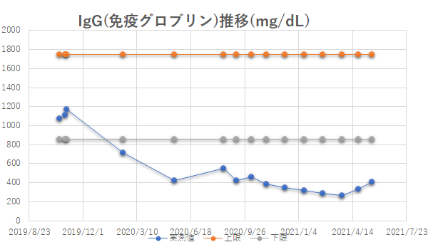 | IgG値推移 | 実測値 | 上限 | 下限 |