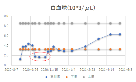 | 白血球 | 実測値 | 下限 | 上限 |